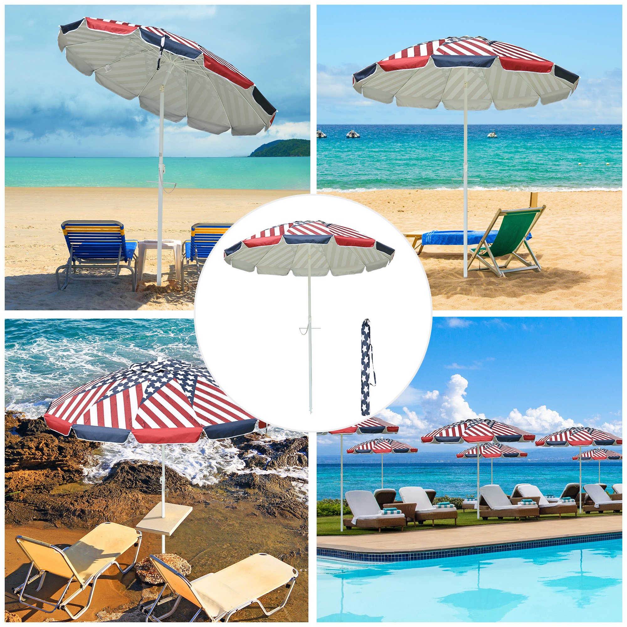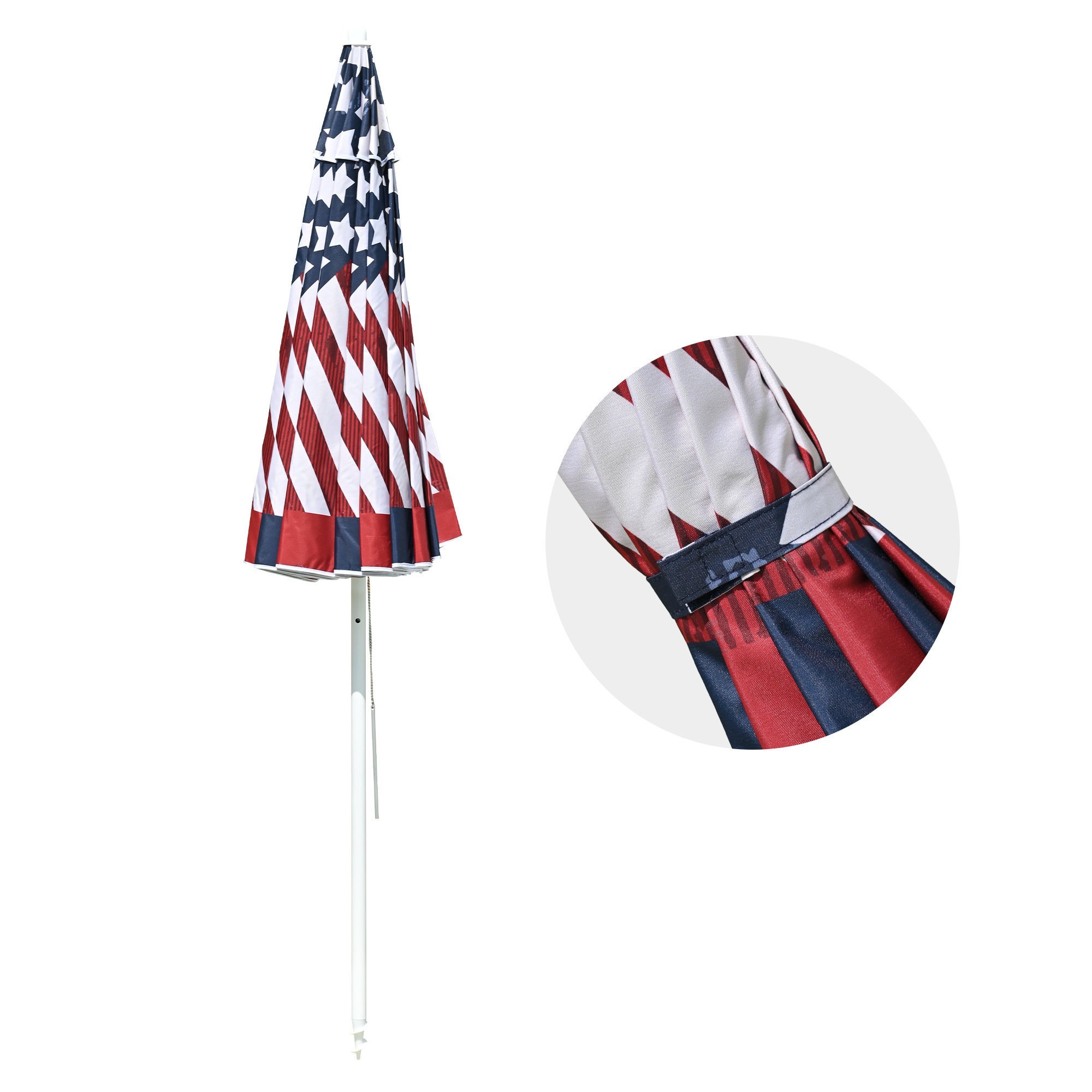 - Star & Stripe Beach Umbrella - 7 ft American Flag Beach Umbrella; flowerlike canopy with red stripes on the 12 panels & swirling stars at the center; helps show your undying patriotism & love for the country; perfect for shading 1 to 2 beach chairs while making a splash on the coast; beach; backyard or pool