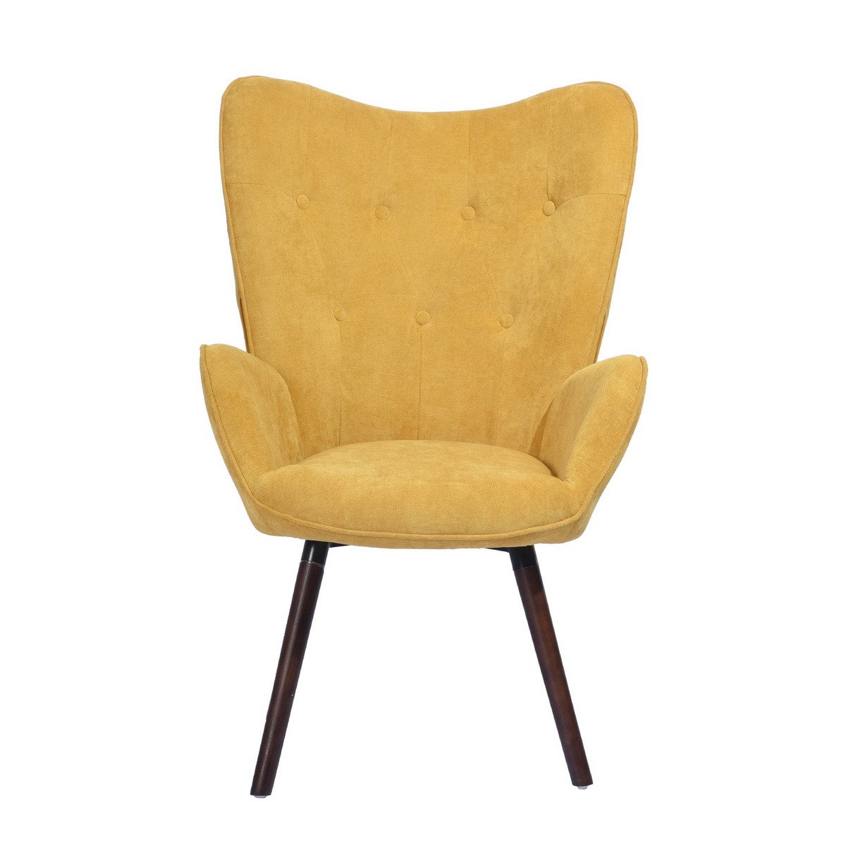 Bring a modern addition to your living room; media space; or reading nook with this Contemporary Wingback Accent Armchair. Upholstered in premium fabric and button-tufted; this generous wingback design accent chair will settle you with premium comfort while watching TV; reading books; or having a good relaxation. The legs are constructed of solid wood in light oak or deep espresso that helps accentuate the fabric upholstery. It comes in four available colors which go great with a variety of home decor styles and color palettes.