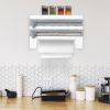 Kitchen Roll Dispenser Paper Roll Holder Plastic Wrap Film Foil Paper Organizer w/ Cutter Wall Mounted for Kitchen Bathroom