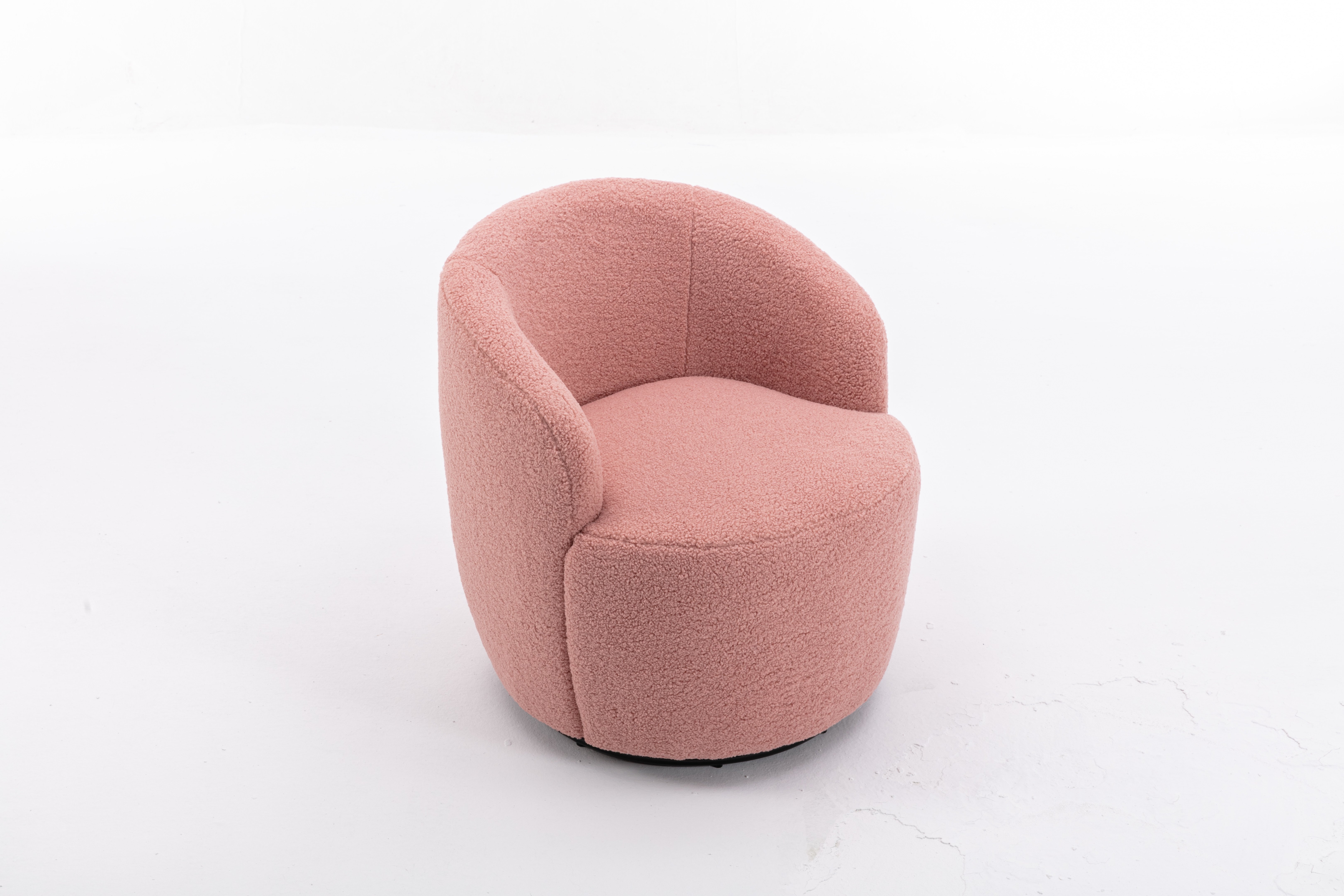 Home > Teddy Fabric Swivel Accent Armchair Barrel Chair With Black Powder Coating Metal Ring; Light Pink